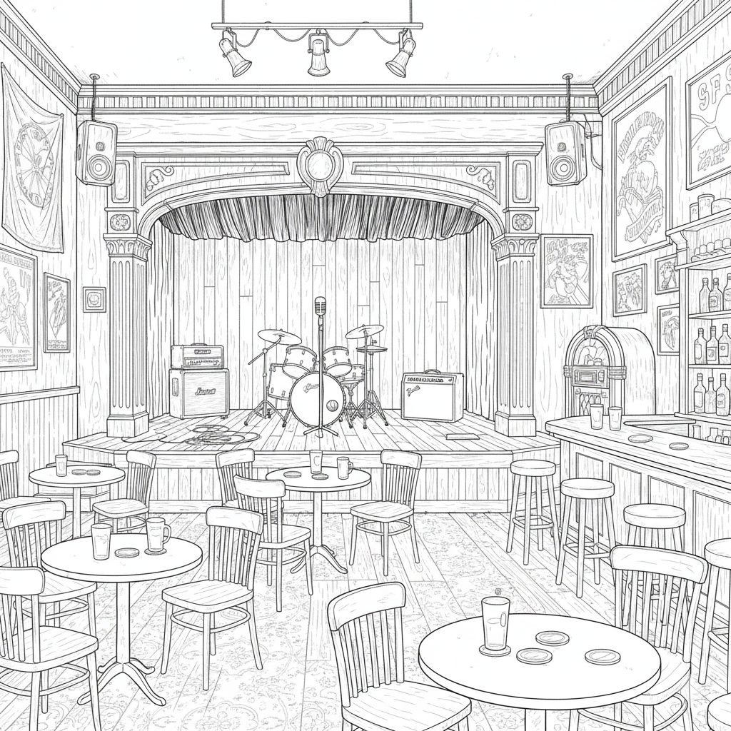 A Club Room hangout/rehearsal/recording/soundstage space with room for an audience, for bands and smaller organizations to have a place to meet or just hang out. Think coffee house with a stage, a vocal booth, and comfortable seating. With the added twist of a fully functional recording studio for audio and video.